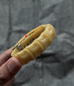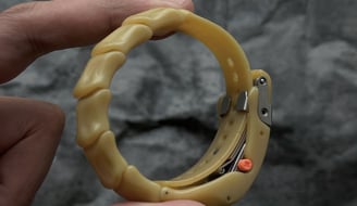 A surreal twist on time — the strap mimics bone, the case hides the dial like a secret. A design where time disappears — and the idea remains. Born from the mind of a designer who saw time not as function — but as form. A piece that blurs the line between fashion, sculpture, and rebellion.